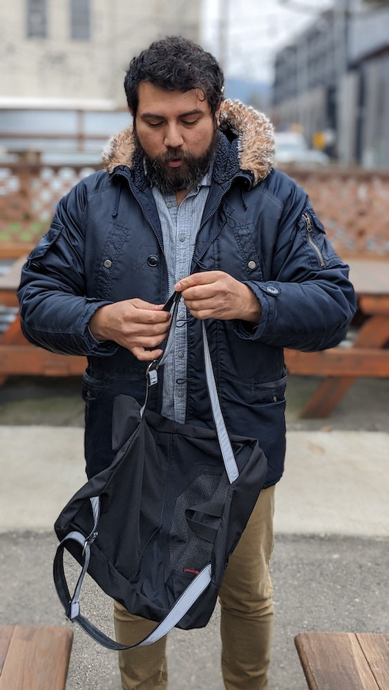 Made from upcycled, water resistant TREW outerwear, the TREW x Cycle Dog Backpack has pockets galore to help you carry everything you need for you and your pups adventures near and far. Adjustable straps are made of upcycled bike tires and reflective material to keep you visible on the trail.