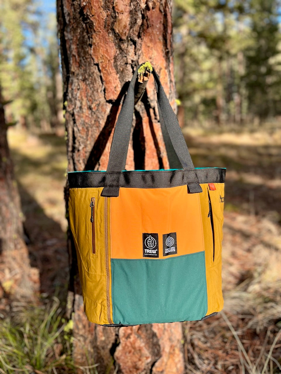 The tote is so awesome! Super well made and very sturdy. We love to keep our essential gear stored ready to go in tote bags. I gave it to my wife for her birthday and she loves it. It is the perfect size for her mountain bike essentials. Hopefully Trew will make another run of the upcycled totes. It is a really great and fun product.