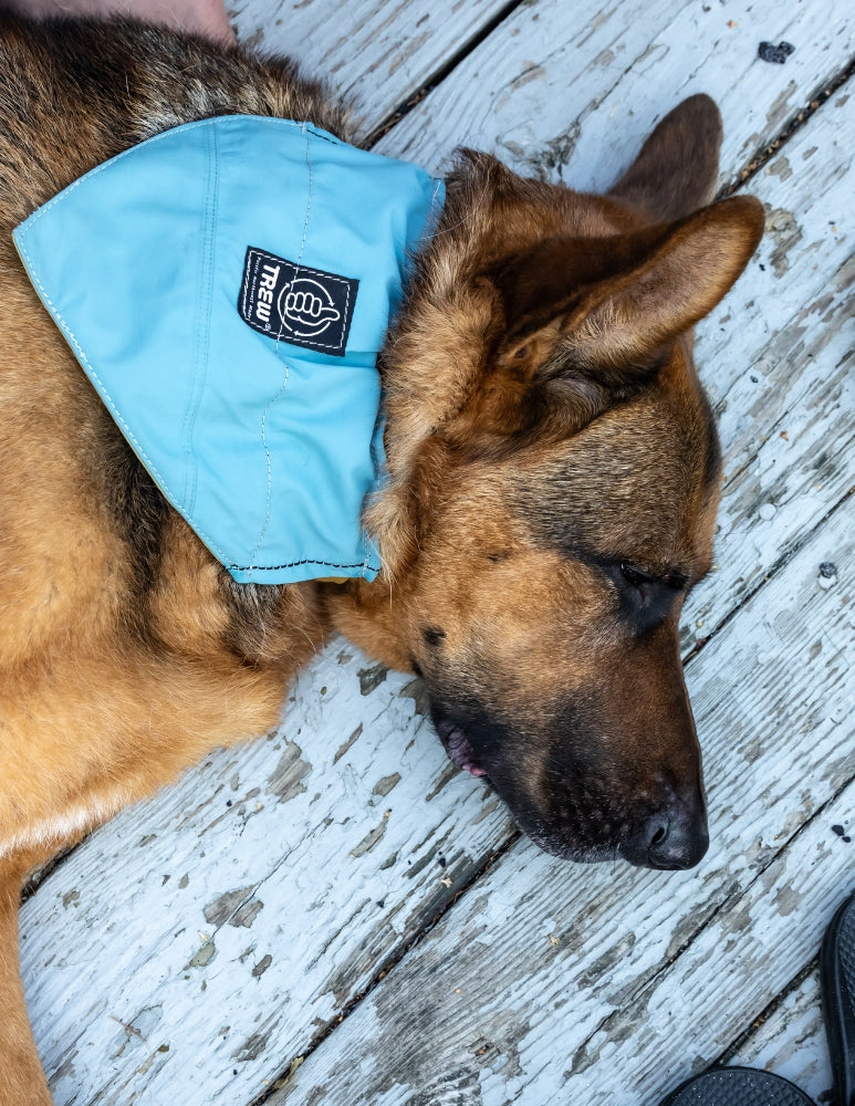 Made from upcycled, water resistant TREW outerwear, the TREW x Cycle Dog Bandana will keep your furry friend ready for any weather and extra cute to boot! The bandana is designed so that a collar can slide through the top with ease (not compatible with martingale collars). Three sizes available: